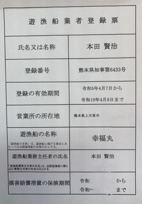 現在天草漁業協組合の大矢野地区の総代を努める。 |