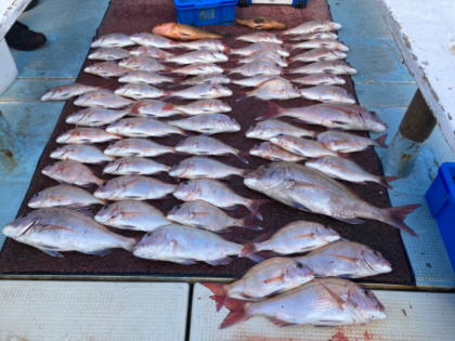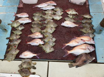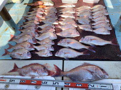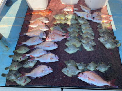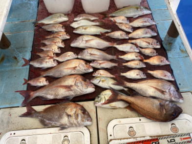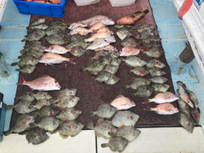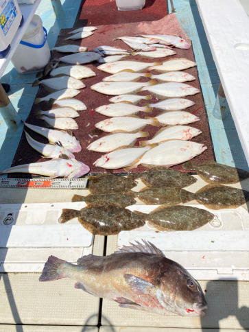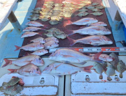 ![]() 29日 鯛・カワハギリレー 半分半分の時間で どちらもまずまず 鯛は大型7枚と好調 |