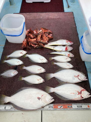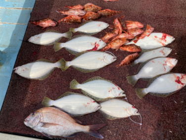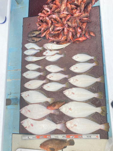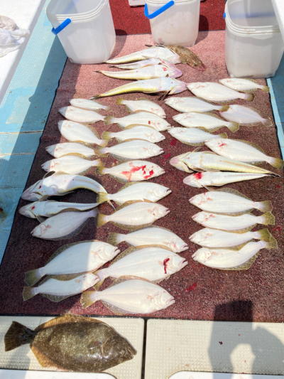 19日 この他62pなどイケスに20枚 ヒラメだけで68枚 |