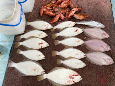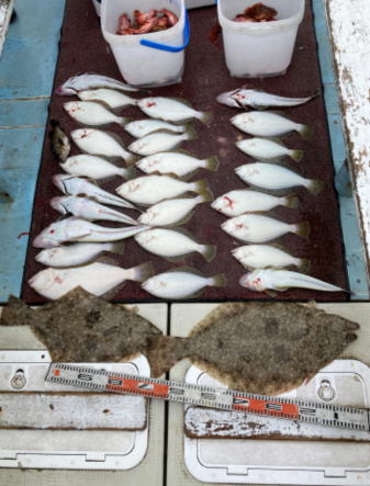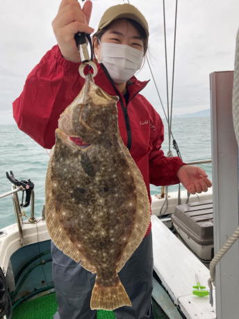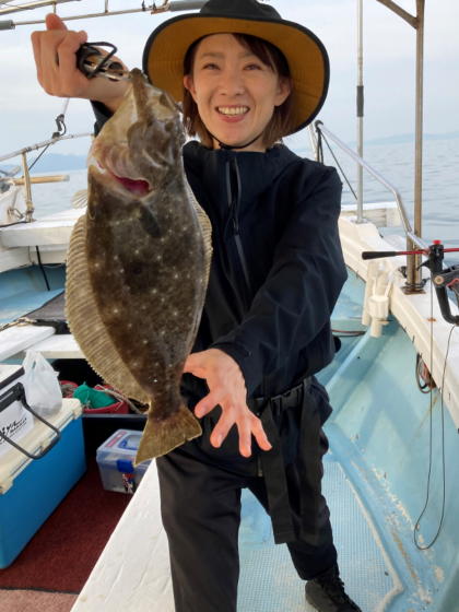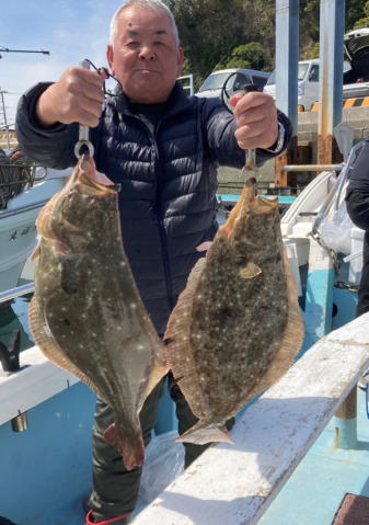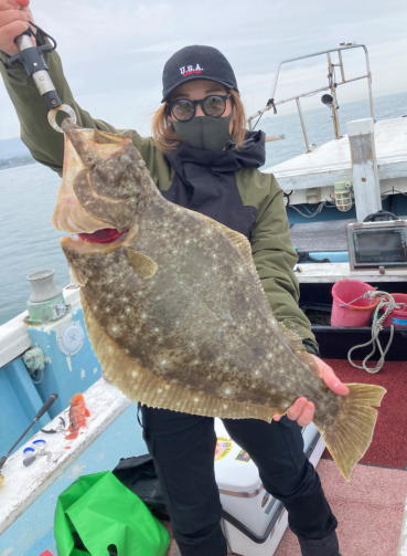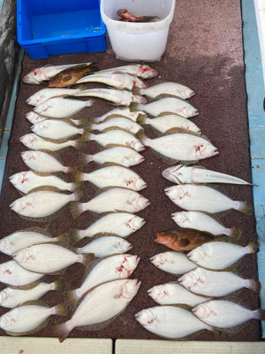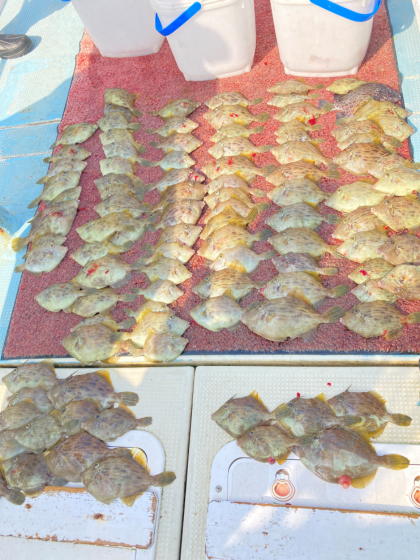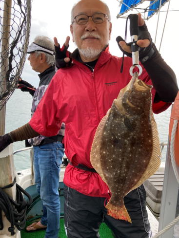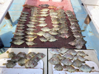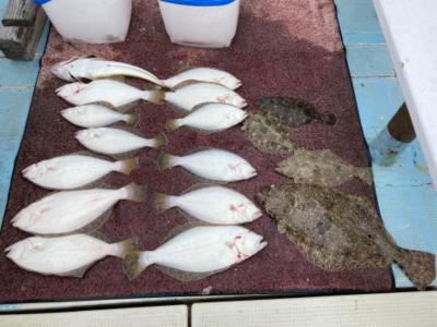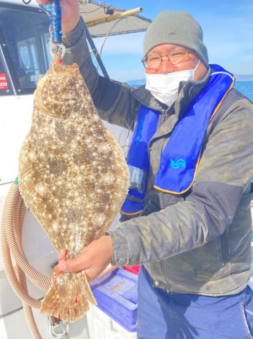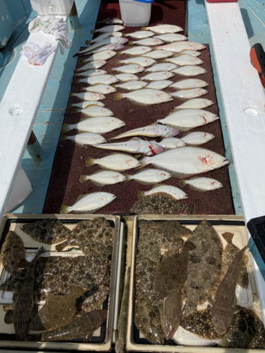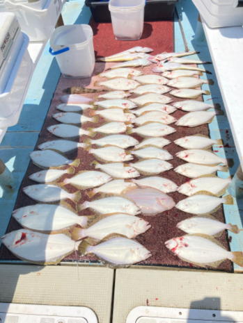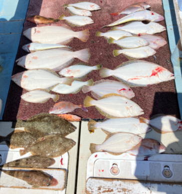 5月2日 数はヒラメ50枚 サイズは52p頭に コチはキロ超えサイズ6本 |