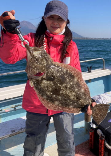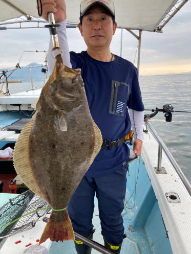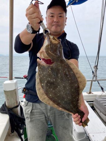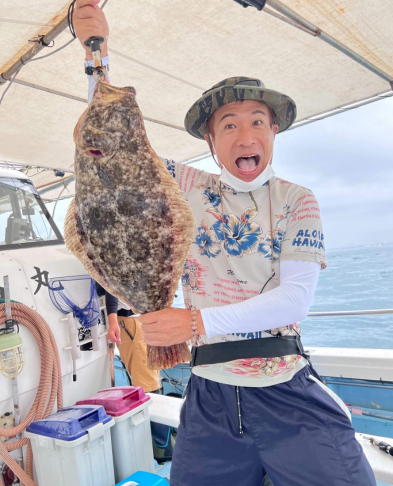 ![]() 2度目のヒラメ挑戦で座布団 確保のタレントの太田弘樹さん |