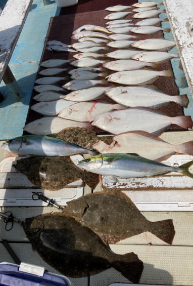 ![]() 6月12日 お客様少数でも ヒラメは数多く オマケでメーター超えるブリまで |