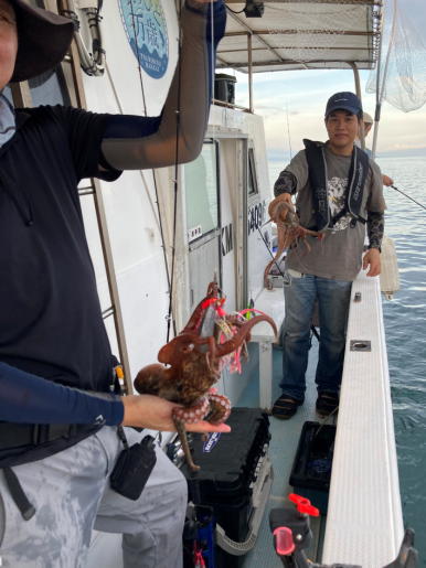 ![]() ![]() ![]() 23日タコにて 県外よりタコ釣り遠征の皆様 |