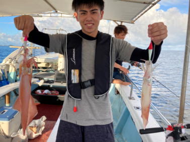 ![]() ![]() 8月15日 赤イカ からの鯛 どちらも釣れれば良型 |